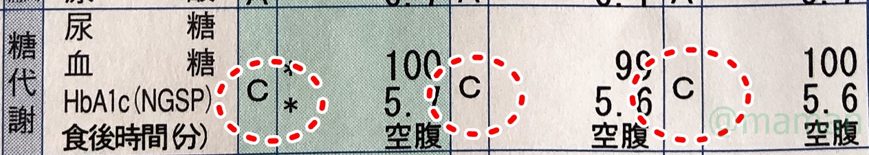 C判定はかなりのグレーゾーンなので、本腰をいれて、血糖値対策に取り組む必要ありです。